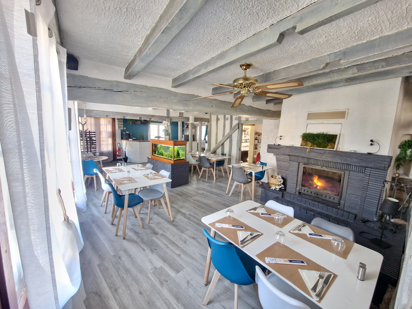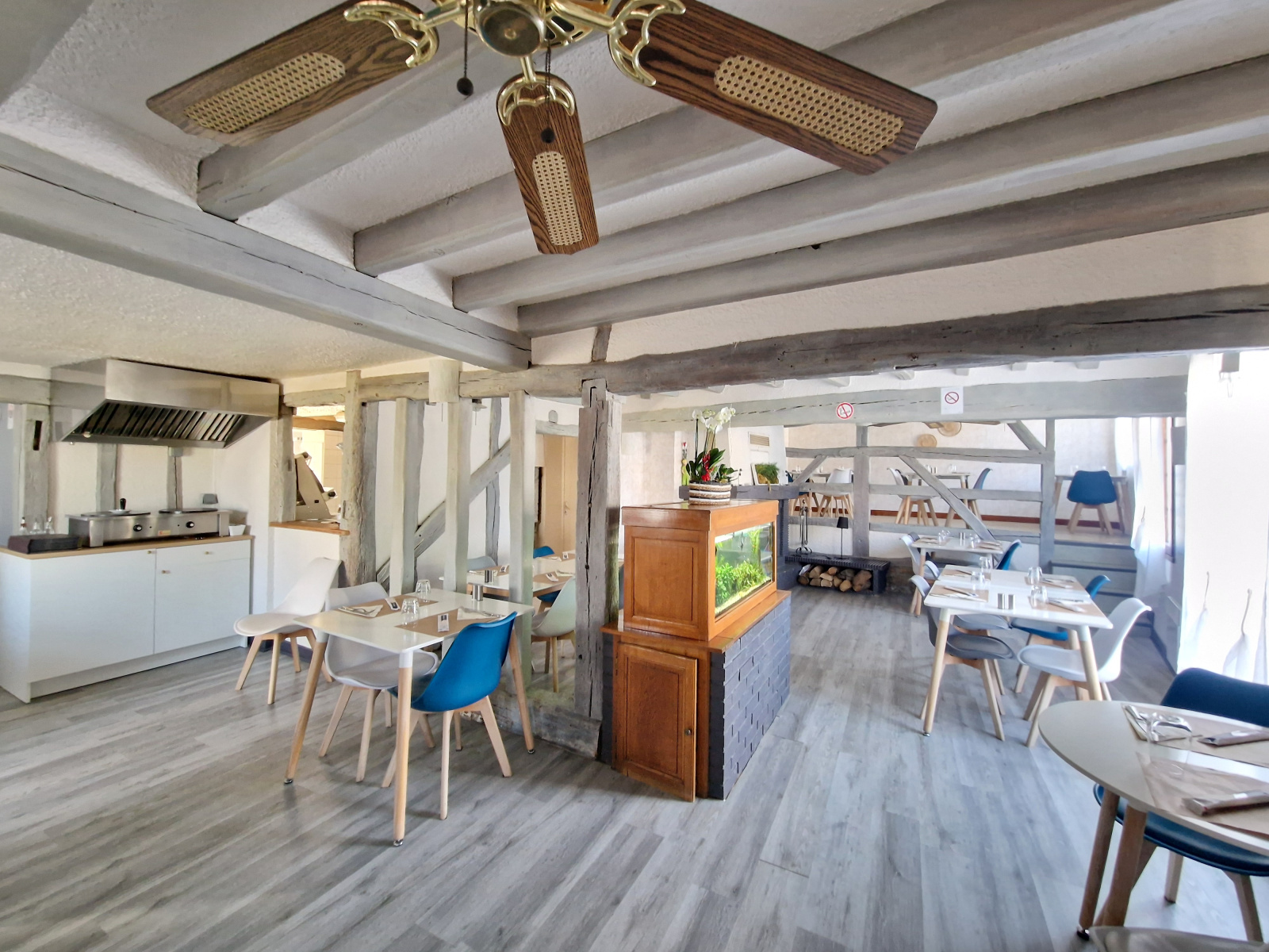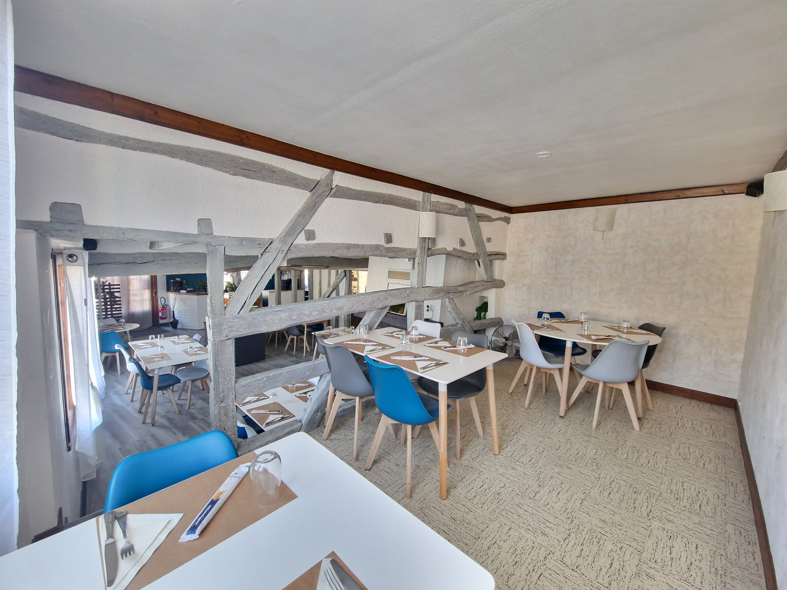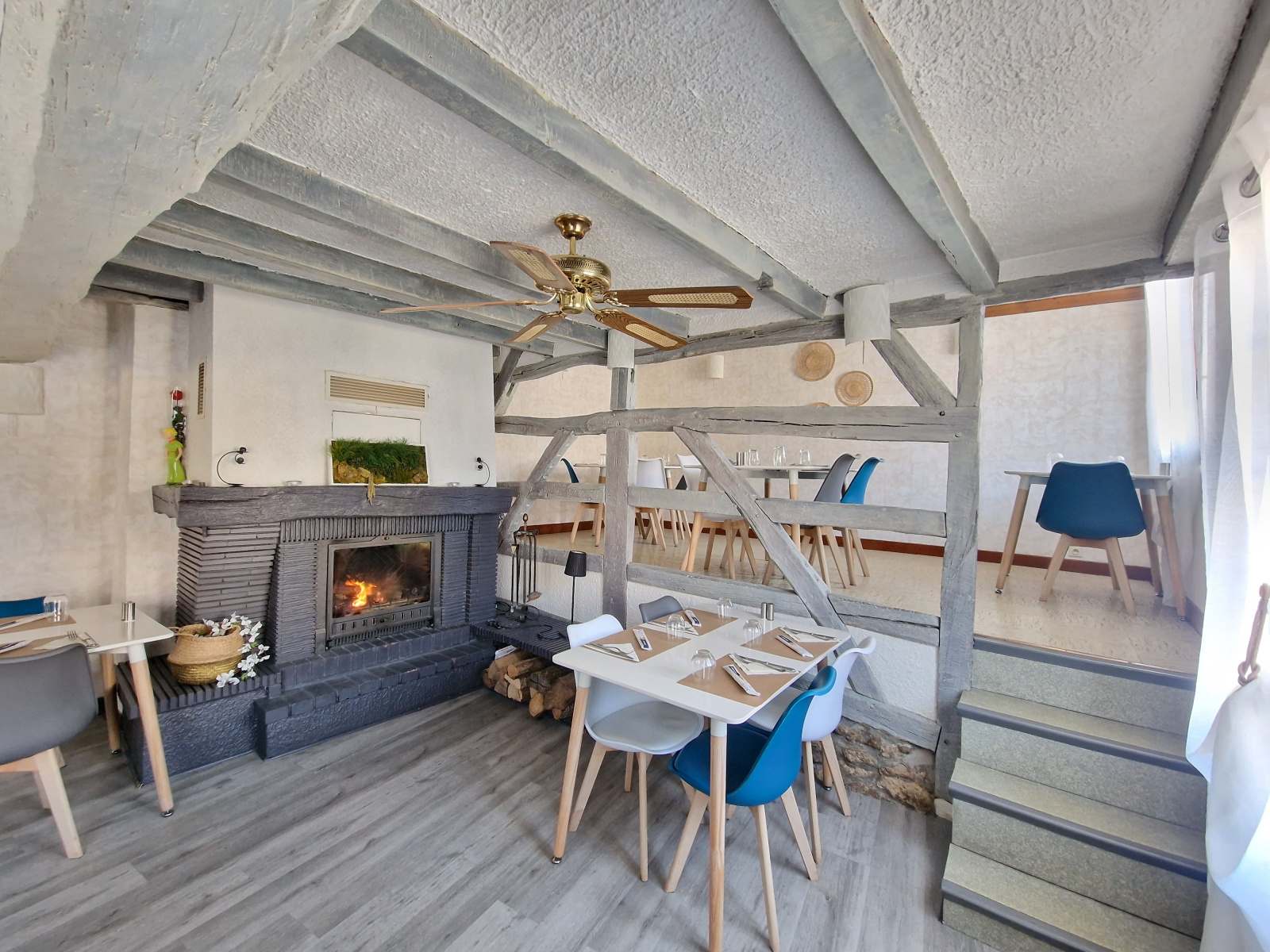 Au rez-de-chaussée, vous découvrirez, salle de restaurant avec un agencement soigné, cuisine équipée, réserve, et toilettes. A l'étage, un espace privé de 54m² supplémentaire composé d'une pièce de vie, de deux pièces (7m² et 13m²), et d'une salle de bains avec toilettes, idéal pour un espace de repos pour le personnel ou un projet d'hébergement au besoin.