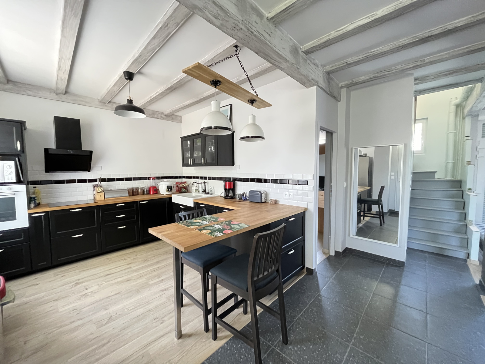 Vous découvrirez au rez-de-chaussée, entrée, cuisine ouverte sur salon-séjour de 41m², chambre.