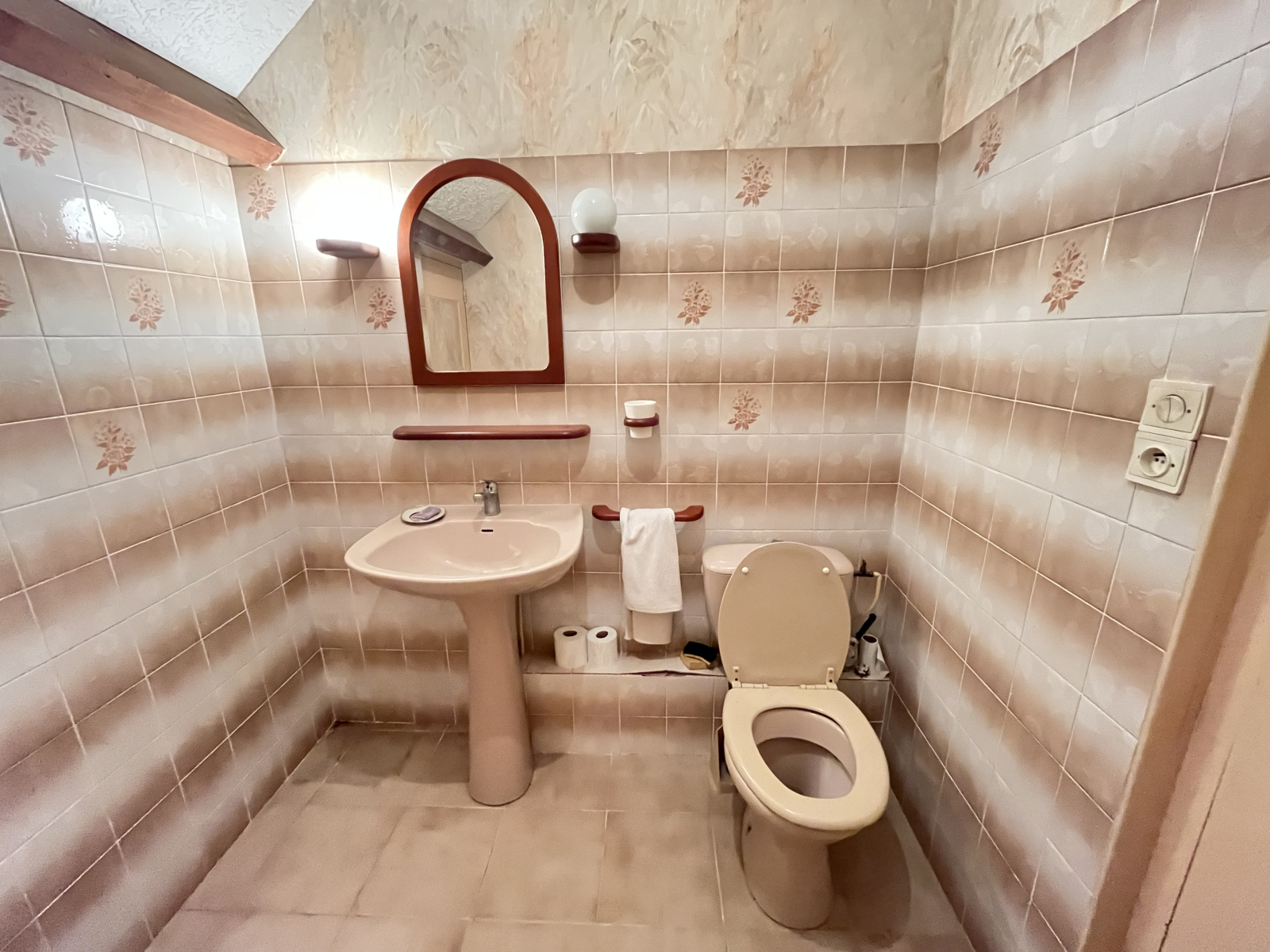 A l'étage, le palier dessert trois chambres et une pièce avec une arrivée d'eau avec toilettes.