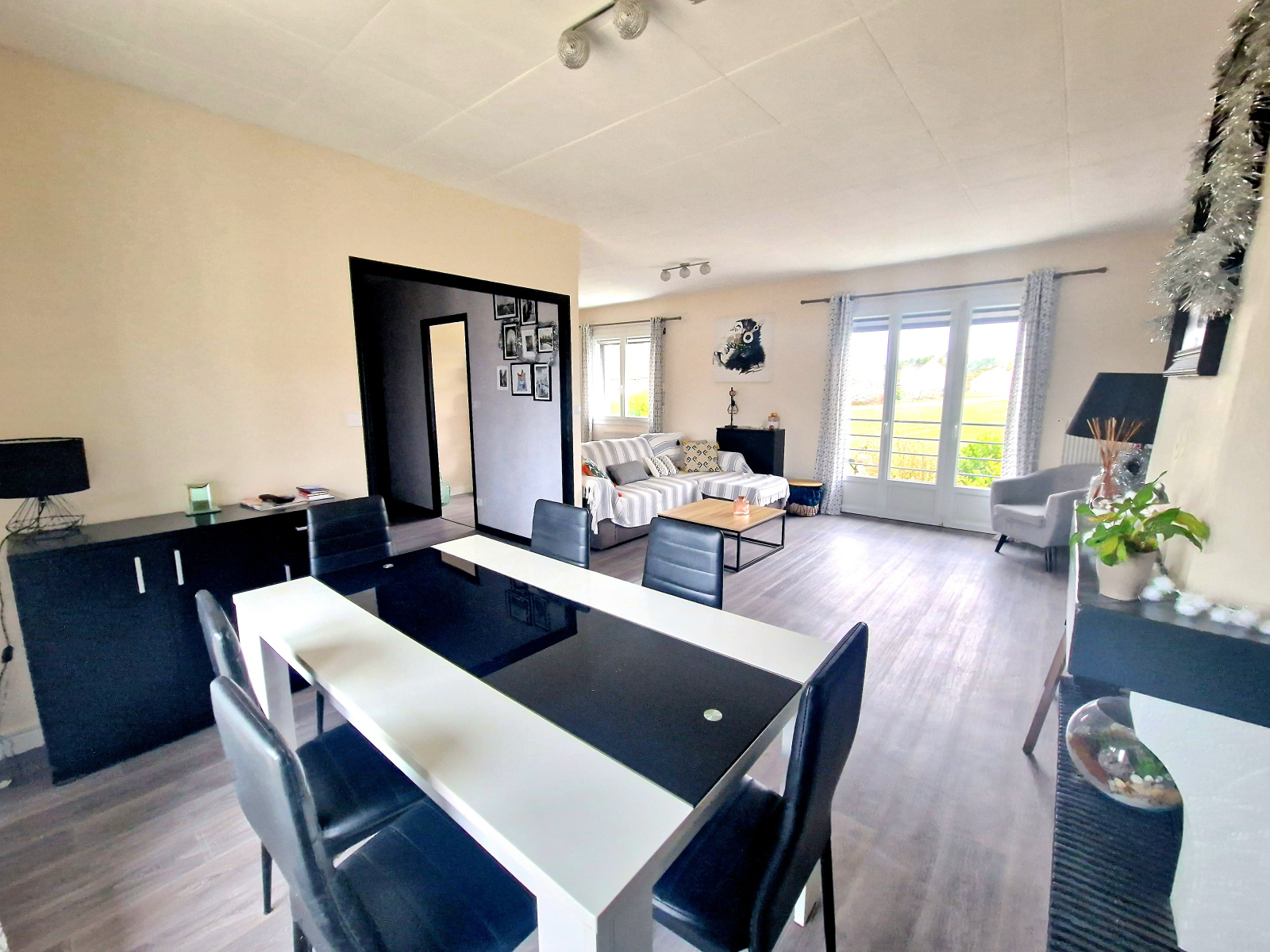 A l'extérieur, vous bénéficierez d'une vaste entrée permettant d'accueillir plusieurs véhicules, ainsi qu'un terrain clos et arboré sans vis-à-vis.